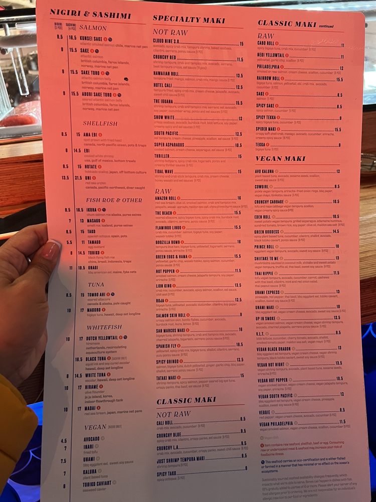 The menu is a delightful mix, featuring mouthwatering shellfish options like Ama Ebi and Uni, alongside comforting classics like Kombu Miso Soup. For those seeking a creative twist, the Kaluna Crispy Rice Cake delivers a perfect balance of spice and crunch.